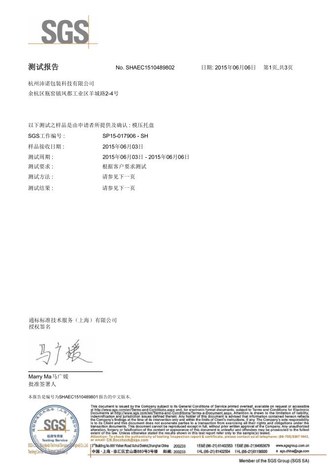 甲醛测试报告 SGS中文